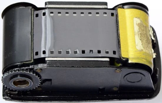 The Alfa had an unconventional vertical format, with the portrait-format viewfinder in a curved, cream-coloured surround at the top, the lens barrel below that, and the film running vertically from bottom to top. There were cream plastic controls around the lens, and wind-on knob on the user's left, just above an accessory shoe. The shutter release was a large button on the front, below the lens on the user's right. The frame counter was also on the front, below the lens opposite the release. It had a leaf shutter with speeds 1/30 - 1/125 + B (top speed seems to be different on some examples) and a WZFO Euktar 45mm / f4.5 lens with PC flash sync socket.