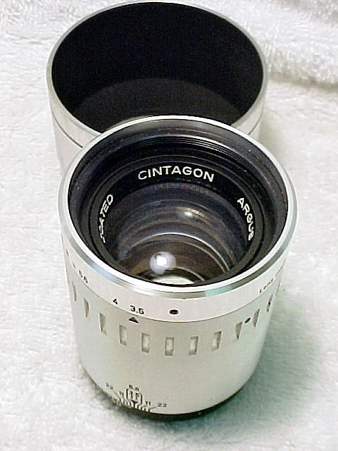 It is a new design incorporating features of the Argus C3 and Argus C4 series in a boxy body even less appealing than the famous brick. It have a combined rangefinder/viewfinder. There are interchangeable lenses, and a coupled lightmeter as an accessory for the camera. Shutter cocking is coupled to the film advance lever. [1]