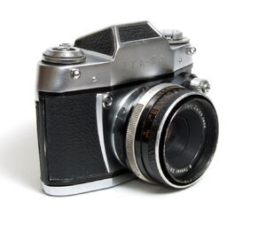 Exa IIa is a 35mm film SLR camera made by Ihagee Kamerawerk Steenbergen & Co, Dresden, former East Germany and produced between 1963-64 with quantity 46.500 units. It is in long lasting Exa SLR series of Ihagee.