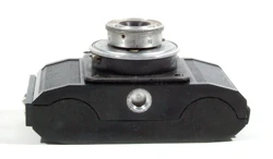 These cameras were designed to be inexpensive and accessible to the public. It is a very simple viewfinder camera made of bakelite. It has a removable back and uses cassette to cassette film transport. All controls are on the lens/shutter barrel.