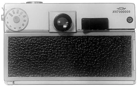 - On the back: speed setting dial : 1/2 - 1/1000 sec., B (bulb), A (automatic, takes meter reading and automatically sets shutter), viewfinder, film advance lever, socket for recharging